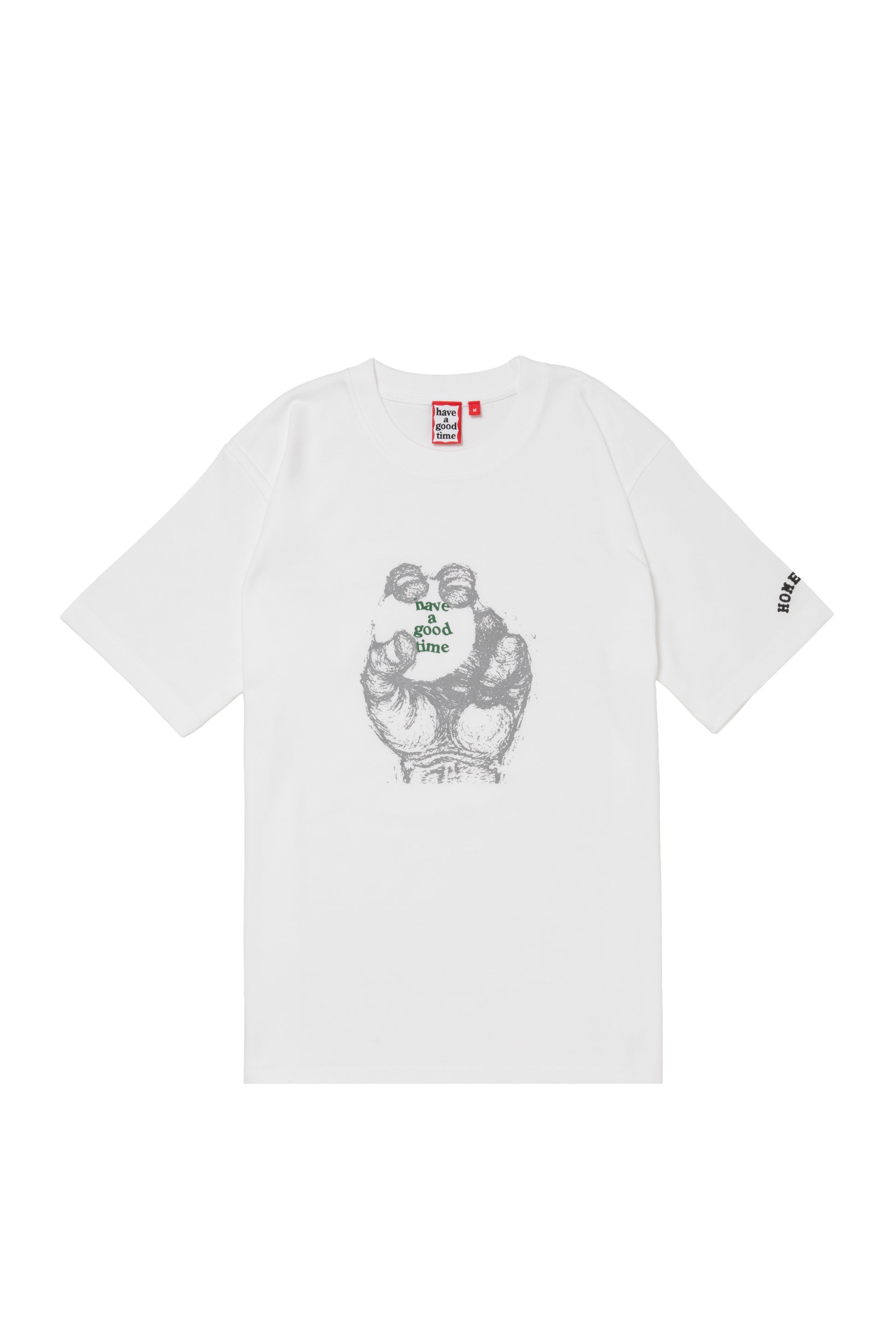 Screen-printed text logo on the sleeve